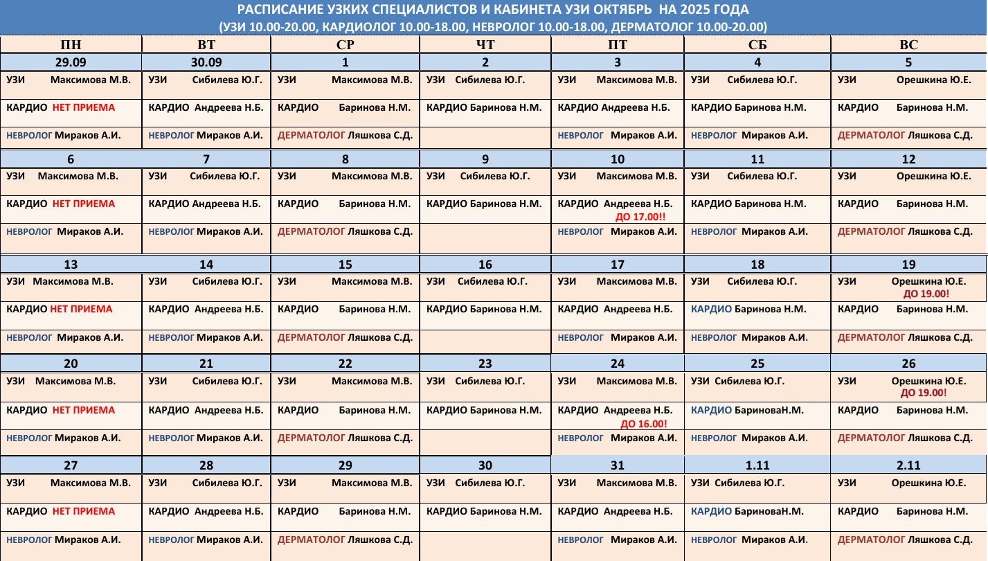 ТЕРАПЕВТЫ ВЕДУТ ПРИЕМ до 20.00 |